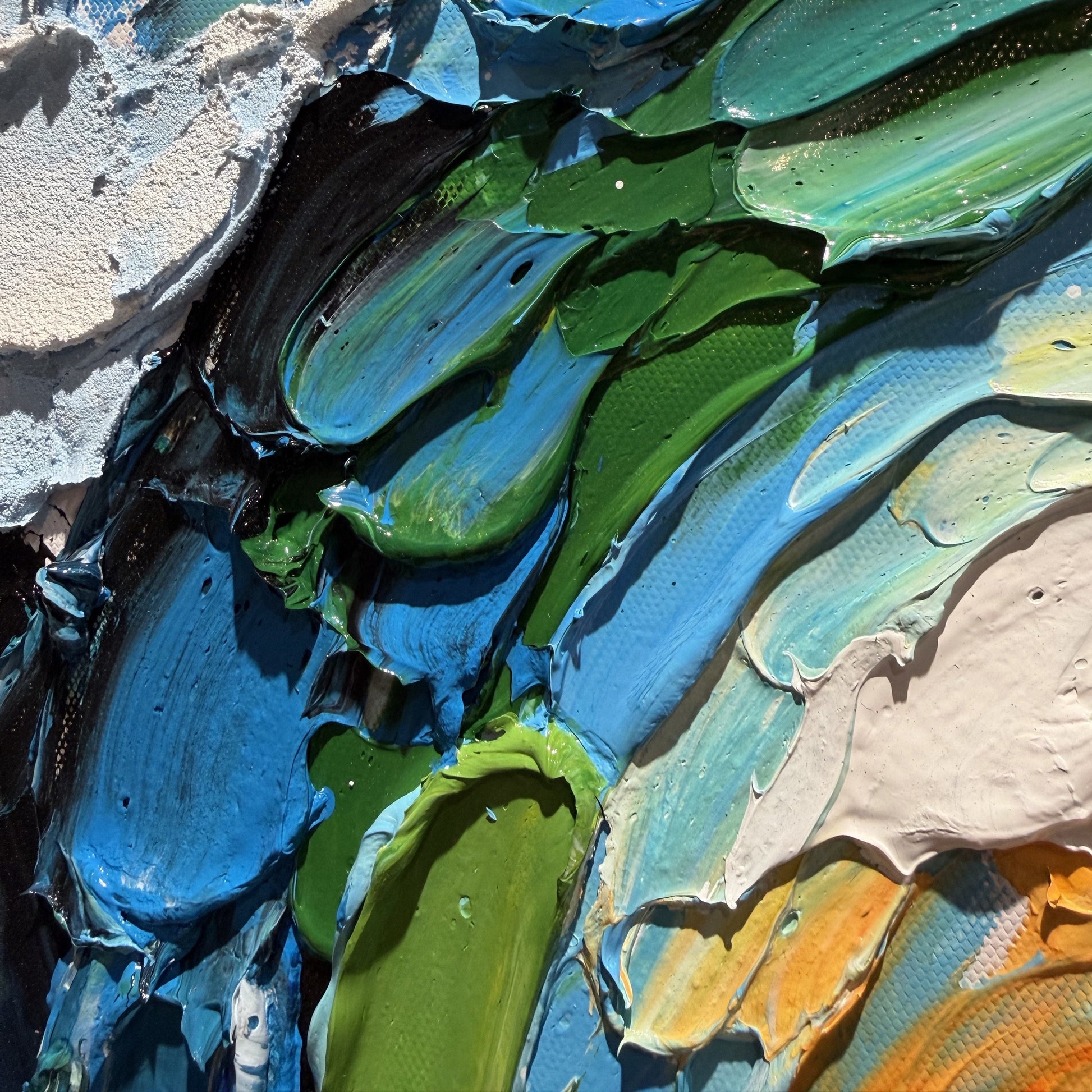 Lura Studio artisans utilize palette knives to slash and build layers of heavy-body pigment, creating a high-relief surface that stands proud of the canvas. Every ridge of white foam and every trough of navy water is physically palpable, designed to catch and manipulate the ambient light of your home. The result is a living surface that shifts with the passing day, revealing new shadows and depths as the sun moves across your walls.